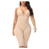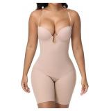 Strapless Shapewear for Women Backless Bodysuit Tummy Control Built-in Bra Low Back Deep U Plunge Body Shaper(L)