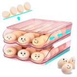 Rubtlamp Clear Pink Egg Container For Refrigerator, Egg Holder Organizer With Lid, Auto Rolling Egg Holder, Large Capacity 36 Count Egg Dispenser Storage, Egg Holder For Refrigerator(2-Layer)