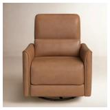 Relax in elevated comfort with this Genuine leather swivel power recliner. Set on a smooth 270° metal base, it lets you turn easily toward conversation or your favorite show. Upholstered in genuine leather, it adds a vintage-inspired feel while resisting stains, tears, and water. Foam-filled cushions over sinuous springs deliver lasting support, and built-in USB and Type C ports keep your devices charged. Just press a button, recline, and unwind in style.