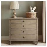 Madison Park Signature Victoria dresser blends modern classic style with molding details, turned legs, and antique-finished wood with metal drawer knobs. The finish highlights the natural wood grain texture, giving it a warm, inviting look. Its 40” width offers ample storage with four drawers that glide smoothly on metal ball-bearing glides with dovetail joinery. Solid wood legs with plastic glides protect floor. Includes an anti-tip kit for safety. Easy to assemble with 6” clearance for robotic vacuums. Perfect for bedrooms, nurseries, hallways, and more —add timeless elegance to your space today!