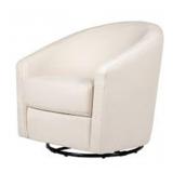 Snuggle in and rock babe to sleep with the sublime comfort of this swivel glider in polyester. The softly rounded back and spacious seat make for heavenly cuddling while the metal swivel mechanism base allows you to turn and glide a full 360°. The classic mid-century curves of the swivel glider will add beautiful comfort during the nursery years and beyond.