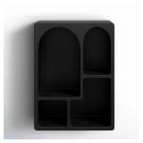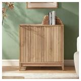 - Wall-mounted design with slatted detailing and curved edges for a modern touch