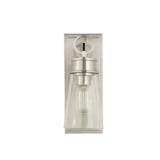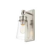 This 1-light wall sconce is compact in design and brings a breezy coastal cottage vibe to your hallway, bathroom, or bedroom. Crafted from steel with a sleek finish, it features a rectangular backplate and an arm that holds the downward-facing fixture in place. A singular bulb is sold separately and surrounded by a clear glass cone shade. This armed sconce is also compatible with dimmer switches to move you effortlessly from day to night. And, since it's rated for dry locations only, it should only be installed in rooms with no or limited moisture exposure.