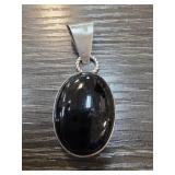 Navajo Sterling Silver Pendant w Black Stone SIGNE |