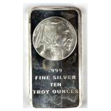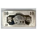 Bison Note 10 oz .999 Fine Silver Ingot/ Bar |