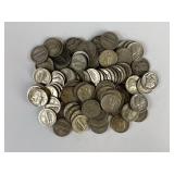Group of 100 US Mercury Silver Dimes |