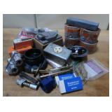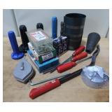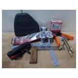 Full list of items below: __________________________________________________ Milwaukee 12V cordless drill with battery and charger in metal case. Metal Craftsman portable toolbox and contents including misc. torch accessories and components as pictured. Toolbox measures approx. 20.5" in length. Fluid extractor/transfer pump in box as pictured. Victor regulator/gauge measuring approx. 7.5" in height. Victor regulator/gauge measuring approx. 7.5" in height. Milwaukee 4" x 24" electric belt sander with new sanding belts (one box is a partial). Binks 86-952 air regulator/gauge measuring approx. 16" in length. Two rolls of 1/0 gauge welding/battery cable. Each roll estimated to be at least 15' in length. Combustion Leak Tester in hardshell case. 9" x 12" x 2" granite surface plate for sharpening. Partial Craftsman tap and die set in plastic case as pictured. Mastercool Universal Hydraulic Flaring Too set in hardshell carrying case. Nesco 11 piece disc brake caliper tool kit in hardshell case. Milwaukee Magnum heavy duty hammer drill in metal case with additional Black and Decker electric drill. Lang internal/external retaining ring tool in hardshell case. Large Duragauge pressure gauge measuring approx. 5" in diameter. Norgen F46-801-MODA air compressor oil removal filter measuring approx. 14.5" in length. Item appears new and unused. Norgen F17-800-A3DA air compressor oil removal filter measuring approx. 11" in length. Item appears possibly used. Watts FluidAir R119-06C air compressor regulator measuring approx. 10" in length. Tormek T-8 water cooled sharpening system with grinder, hand tool kit and additional wheels as pictured. Assortment of misc. automotive supplies including distributor cap, battery cable terminals and more as pictured. Assortment of misc. automotive supplies including O-rings, retaining rings, ignition items and more as pictured. Assortment of misc. automotive supplies including retaining rings sets, belts and more as pictured. Assortment of misc. automotive and shop supplies as pictured. Large group of misc. files and wooden handles, many by Simonds. Assortment of various grinding/sanding discs and brushes as pictured. Large group of assorted Di-Cor air compressor fittings and what appear to be lathe parts. Largest items measure approx. 2" in diameter for reference. Assortment of gunsmithing items as pictured. Assortment of shop supplies as pictured including air compressor parts/accessories. Assortment of shop supplies including hardware, outlet, sharpening stone and more as pictured. Assortment of misc. air compressor parts, fittings and components as pictured. Pair of Binks spray guns, Model B and 69, in boxes as pictured. Pair of large 4.5" Trerice pressure gauges in boxes. Pair of large pressure gauges by Trerice and McKenna. Largest item measures approx. 6" in diameter. Assortment of shop supplies including funnels, face shield, chain and more as pictured. Large assortment of misc. grinding/sanding discs as pictured. Assortment of shop supplies including electrical connections, clamps, hardware and more as pictured. Two boxes of resealable "parts" bags - most measuring approx. 4" x 6". Assortment of misc. air compressor parts, fittings and components as pictured. Assortment of misc. air compressor parts, fittings and components as pictured. Group of work and welding gloves as pictured. Five pair of new Ironclad and Hexarmor work gloves - two missing tags. Five assorted shutoff valves with large inlet diameter measuring approx. 1.25" for reference. Assortment of shop supplies including zip ties, wooden handles, fittings and more as pictured. Stack of copper tubing and brake lines as pictured. Lidded metal organizer with hardware contents - item measures approx. 18.25" in length for reference. Sun engine analyzer and inductive timing light. Two rolls of 3/4" air hose as pictured - for reference, stack measuring approx. 16" in diameter. Assortment of automotive hose as pictured. Automotive parts grouping as pictured - believed to be for Jaguar S-Type. Automotive parts grouping as pictured - believed to be for Corvette. Automotive shifter grouping as pictured - believed to be for Corvette. Automotive parts grouping as pictured - believed to be for Corvette. Appearing unused, Hydro Farm grow light with ballast. Hood measures approx. 20.5" x 20.75" for reference. Full five quart jug of Castrol Edge 5W-30 synthetic motor oil. Full five quart jug of Castrol Edge 5W-30 synthetic motor oil. Full five quart jug of Castrol Edge 5W-30 synthetic motor oil. Two full one gallon jugs of AMSOIL 10W-30 synthetic motor oil. Six quarts of Mobil 1 10W-30 synthetic motor oil in box. Six quarts of Mobil 1 10W-30 synthetic motor oil in box. Full five quart jug of Mobil 1 15W-50 synthetic motor oil. Full five quart jug of Mobil 1 15W-50 synthetic motor oil. Full five quart jug of Mobil 1 5W-30 synthetic motor oil. Full five quart jug of Mobil 1 5W-30 synthetic motor oil. Full five quart jug of Mobil 1 5W-30 synthetic motor oil. Full five quart jug of Mobil 1 5W-30 synthetic motor oil. Two full one liter bottles of Castrol React RSF racing brake fluid. Two full one gallon jugs of Prestone Dex-Cool antifreeze/coolant. Full one gallon and two half full jugs of Prestone Dex-Cool antifreeze/coolant. Full five quart jug of Castrol Edge 10W-30 synthetic motor oil. Full five quart jug of Castrol Edge 10W-30 synthetic motor oil. Full five quart jug of Castrol Edge 10W-30 synthetic motor oil. Three full one liter bottles of ZF-Lifeguard 6. Three full one liter bottles of ZF-Lifeguard 6. Two full one quart bottles of Red Line D4 ATF transmission fluid. Two full one quart bottles of Red Line D4 ATF transmission fluid. Two full one quart bottles of Red Line 75W90 high performance gear oil. Two full one quart bottles of Red Line 75W90 high performance gear oil. Two full one quart bottles of Red Line 75W90 high performance gear oil. Two full one quart bottles of Castrol SRF synthetic racing brake fluid.