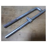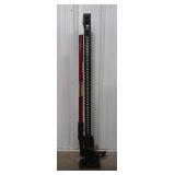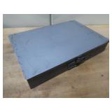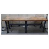 Large, heavy duty, metal based workbench measuring approx. 96" in length, 30" in depth and 34.5" in height. For reference, surface measures 2"+ thick. |
