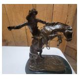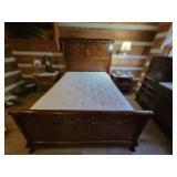 TAL#7539 2 Tiger Oak Dresser With Mirror Top Tiger Oak dresser measuring 53�� x 28�� x 78��, tall featuring a marble top, a decorative mirror with ornate carvings, and brass hardware. Includes five drawers and a side cabinet with shelving. Shows tiger stripped Oak ... 3 Victorian-Style Tiger Oak Dresser Victorian-style tiger oak dresser measuring 30 1/2�� x 20�� x 62 1/2�� tall, featuring ornate carved details and claw-foot legs. Includes three drawers with decorative pulls, a beveled mirror, and a white marble top. Dov... 4 Queen Tiger Oak Bed Frame Queen-size bed frame crafted from tiger oak with carved details on the headboard and footboard. Features claw feet and intricate oak leaf carvings. Solid construction with mortise-and-tenon joints. Please see photos for further details. 4 Oak Gun Display Cabinet With Lighting Wall-mounted gun Oak display cabinet featuring glass front, three drawers, and built-in lighting. Includes hardware key for secure access. Dimensions listed as 55�� x 9.5�� x 30 inches tall. Ideal for showcasing collectibles or gu... 5 The Bronco Buster Bronze Statue Frederic Remington's "The Bronco Buster" bronze statue depicting a cowboy riding a rearing horse measuring 10" tall. Features intricate detailing and is mounted on a stone base with a name plaque. Manufacturer's mark visible on the sculpture. 6 Hudson Bay Trade Bead Necklace & Medal Hudson Bay trade bead necklace featuring red and white beads alongside a medal inscribed with �George Washington President 1792.� Medal measures 3 3/4 inches long. Mounted on a green fabric-covered board with display dimensions of 8 x 12 in... 7 Vintage Metal Ammo Boxes with Ammunition Two metal ammo boxes containing various ammunition. Includes 12 and 20 gauge shotgun shells, .32 Short Colt 50 shell in box, .45 Long Colt, and .22 caliber rounds. Includes brands like Winchester, Remington, Federal, and others. 8 Vintage Coleman Model 237 Lantern with Fuel Can Coleman model 237 lantern with green top, marked 'Globe No. 660' and 'Use Generator No. 237-299.' Includes a metal 1-gallon Coleman fuel can(not full). Moderate wear visible. Lantern measures approximately 12 inches tall. 9 6 Gallon Stoneware Crock With Wire Handles Potentially Louisville Pottery Stoneware crock measuring approximately 13x14 inches featuring two wire and wood handles. Marked with a blue emblem and the number 6 on the front. Condition shows typical wear consistent with age and use. 10 Vintage Husqvarna No. 32 Meat Grinder Husqvarna No. 32 cast iron meat grinder, approximately 12x8x5 inches, featuring a manual hand-crank and marked 'Reliance Made in Sweden.' Rustic condition with visible signs of use. 11 Vintage Adjustable Fluorescent Desk Lamp Vintage fluorescent desk lamp with a flexible gooseneck and rectangular metal base. Features a red and black switch panel and a beige plastic shade. Shows signs of wear, But it works. 12 Vintage Bell System Climbers with Leather Straps Bell System climbing spikes marked 'Bell System-A 16.' Each measures approximately 16.5" in length. Features leather straps and visible manufacturer markings. Some wear evident on leather and metal components. 13 Case XX Knives, Fixed & Folding A Case XX 509-5 fixed blade knife with wood handle and original sleeve, alongside a Case XX 2137 SS folding knife with black handle. Both blades are marked clearly. Items show signs of usage. Please see photos for further details. 14 Two Knives with Bone Handles A Ka-Bar rifle knife with bone handle, patch knife with antler handle, leather sheath, and a Knife-Guard. The Ka-Bar knife is engraved with �Rifle Knife,� and shows signs of use. The patch knife features a curved blade and antler handle. Pl... 15 Norstaal Norway Travel Cutlery Set Norstaal Norway travel cutlery set featuring folding stainless steel spoon, fork, and knife marked �Nicht Rostend� and �Zwilling J.A. Henckels.� Includes a brown fabric carrying case. Appears convenient for portable use. Please se... 16 Hoken Solingen Straight Razor Set Hoken Barber�s Supply Solingen straight razor with yellow handle, engraved �Congress Best in the World.� Comes with a leather case and strop with metal hook hardware and an additional leather pouch. Signs of wear present. Please see ph... 17 Two Knives with Sheaths and Sharpening Stone Two knives with bone/antler handles, each accompanied by a sheath. Includes one USN Mark 1 fighting knife and a Damascus steel knife. A sharpening stone is also included in this lot. Both knives exhibit unique handle materials and functional designs.... 17 Mora and Dozier Knives with Sheaths Two knives including a Mora Morakniv from Sweden with a green handle and plastic sheath, and a Dozier knife with black handle and leather sheath. Both knives show light use and are in overall good condition. Please see photos for further details. 18 Bentwood Spindle Jury Chair Bentwood jury chair featuring a spindle back and a sculpted seat. The chair exhibits elegantly curved arms and legs, crafted with a graceful and timeless design. Constructed in sturdy wood, it is suitable for both decorative and functional use. Pleas... 19 Metal-Based Glass Oil Lamp Metal-based oil lamp featuring a decorative glass font without a chimney. The piece stands 13 inches tall and includes intricate detailing on the metal base and burner. Wick appears intact. Ideal for decorative or functional purposes. 20 Washington Drape Amber Oil Lamp Washington Drape amber glass oil lamp featuring a 12-inch wick chimney and marked Aladdin burner. Detailed base and body with decorative accents. Includes metal hardware and amber-colored glass components. Please see photos for further details. 21 Clothing and Footwear Lot Size 14 pants, large tops, and shoes size 6 1/2. Items consist of clothes on hangers, folded garments, boots, and shoes (both casual and formal styles). Additional bedding and accessories included in closet inventory. Please see photos for f