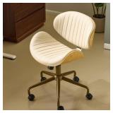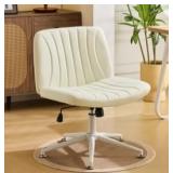 VINGLI 24W x 38H PU Leather Adjustable Swivel Wide Curved Seat Back Armless Home Office Chair Vintage Rustic
