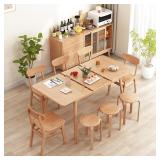(220) Dining Table, Solid Wood Extendable Dining Table Can Accommodate 4-8 People, Sturdy and Easy Assembly Modern Dining Room Table for Kitchen, Living Room, Apartment (Natural)