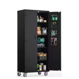 Karl home 31.5 in. W x 72 in. H x 16.5 in. D Metal Garage Freestanding Cabinet in Black with Wheels, Locking Doors, Pegboards