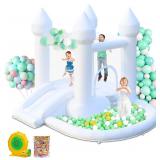 White Bounce House, Inflatable Bounce House with Ball Pit & Slide, Kids Indoor Bounce House Portable Fun House Outdoor Bounce House with Blower for Birthday Party, Wedding Decor