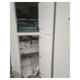 Furniture & Textiles: Wayfair King Bed frame, custom nightstands, Mid Century modern dining buffet, Room & Board Couch, Ikea desk, West Elm Coffee tables and lamps, 3 large area rugs, Elen DeGeneres basket w/throw blankets, loaded linen closet, bathroom accessories, woman’s clothing coats, shoes, and gloves.
