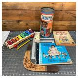 47374 Sony PSP Handheld Video Game System 47375 Vintage BF Goodrich Schwinn DeLuxe Bicycle 47376 Roadmaster Bicycle 47377 Schwinn Suburban Bicycle 47378 Ross Bicycle 47379 Schwinn Bicycle 47380 Edison Home Phonograph 47381 Cylinder Records 47382 Joker and Avatar Resin (hard shell) Wall Plaque Masks 47383 KitchenAid Mixer (tested, powers on) 47384 Cast Iron Delivery Wagon 47385 Models. Visible V-8 (large box) and Nuclear Submarine 47386 Tonka and Other Toy Cars and Trucks 47387 Apple Macintosh 512k Computer 47388 Fisher Price and Playskool Toys 47389 TIme Life Books about WW2 47390 Football Cards +/- late 90s 47391 Promo / Model Cars 47392 Hot Wheels and Matchbox Toy Cars 47393 English License Plate 47394 Vintage License Plates 47395 Johnny Lightning Toy Cars 47396 Vintage Microphone 47397 Atari Video Games 47398 Paintball Gun and Mask 47399 52" Tin Medieval Knight 47400 Mid Century Wall Art, Geometric Mixed Media, paper label David Michael Collection, Signed and Numbered on Front, 31" x 41" 47401 Large Signed Chinese Scroll Painting (large, 62" tall) 47402 2 Clown Paintings. Hand Painted on Canvas. 47403 Collection of Stoneware Whiskey Jugs 47404 28" Print of Undefeated Pitt Football Team in Shadowbox Frame 47405 Johnny Lightning Toy Cars including Kiss and Hogan's Heroes 47406 20" Oil Painting, 19th C., signed A. Willis 47407 Vintage Christmas Tree Ornaments including Paragon and Shiny Brite 47408 20" Snap-On Eagle Wall Clock from 1986 47409 24" United Starburst Style (mid century modern) Wall Clock (battery movement, not tested) 47410 Rogers Bros Plated Flatware Service 47411 Bob Mackie Barbies 47412 Santa Maria Ship in a Bottle Model plus Empty Box Rosco Bartender (no toy included) 47413 Sexton USA Car Plaques and Freedom Bank Auto Bank 47414 VHS Kids Movies, Disney Tapes and Others 47415 Model Toy Cars and Trucks 47416 Antique Copper Kettle Cauldron (24" diameter) 47417 5 Gallon Pennzoil Oil Can 47418 Antique Art Nouveau Era (1920s) Chandelier 47419 Star Trek Phaser, Models, Books 47420 Antique Violin, Copy of Antonius Stradivarius 47421 Vintage Merlin Handheld Game, Mixed TV Hookup Games 47422 Skylanders and Portals, Video Game Character Add-Ons 47423 Comic Books, Scarecrow Mask, Hot Wheels Batmobile 47424 Nintendo DS Game System (no charger, not tested) with Games plus other Cartridge Games 47425 Bonney Socket Set (Chrysler Master Technician Set) 47426 Toy Cars including Aurora, Darda (#5 race car, pullback works), and Others 47427 Hot Wheels and Other Toy Cars in Mixed Conditions (some missing wheels) 47428 Fiesta Chip N Dip Bowl in Scarlett 47429 Schrade, Frost Pocket Knives. Stanley Razor 47430 Mixed Knives including small St. Joe Lead 47431 Pocket Knives including Camillus (only 1 blade) and Buck. Many well used. 47432 Cigarette Cards including Birds and Cinema Stars 47433 Indian Gum and other Vintage Non-Sports Cards 47434 Non-Sports Cards. Military, Presidents, Fire Trucks, Others 47435 1950s Boxing Cards and Dan McFadyen Photo Cards 47436 Packs of Baseball, Basketball Cards 47437 10 Zippo Lighters 47438 Zippo Lighters 47439 Costume Jewelry and Watches 47440 Costume Jewelry and Watches 47441 Micro Machines ID Cards, Nascar Cars, Star Wars Action Figure 47442 Radio Flyer Pull Wagon (with original box) 47443 Xbox 360 and PS4 Video Games (minecraft 360 edition is box only) 47444 Nintendo Wii, XBox 360 Peripherals and/or Other Video Game Accessories 47445 22" Nascar Shadow Box Frames with Mini Helmets. Gordon and Earnhardt Autos with COAs 47446 Holmes and Edwards Flatware Service 47447 Photo Locket, Cross Pendant, 2 Necklaces. All are marked Sterling 47448 Mixed Jewelry. All is marked Sterling 47449 Rhinestone Jewelry. (gold toned necklace is marked Swarovski) 47450 2007 Error Coin. George Washington Missing Edge Lettering 47451 $1.50 in Silver Coins, .25 Clad, plus Pennies and Nickels 47452 Carved Wood Figurines (missing arms) plus Carved Soapstone / Agate Buddhas 47453 Pair of MCM Table Lamps, marked Quartite Creative 1960 47454 37" Vintage Print of Clowns, by Turner Wall Accessories 47455 Singer Model 99 Sewing Machine 47456 Dale Jr Illuminated Sign and Wall Clock 47457 Pentax Auto 110 Camera, Ricoh 401, Kodak 47458 Digital Camera Lot 47459 Polaroid Cameras 47460 OMT Bearing Removal Tool Set 47461 License Plates 47462 Xylophone, Tinker Toys, and Vintage Children's Items 47463 DVD, BluRay Movies. VHS Star Wars 47464 Victrola 47465 Dome Top Trunk 47466 Dome Top Trunk 47467 Christian Becker Diamond Scale (I think missing suspension rods) 47468 30" Antique Wood Screw on Live Edge Board 47469 Penn Central RR Ash Bucket 47470 Vintage Canned Vegetables (all are empty containers with bottoms and tops) 47471 12" x 16" Prints of Civil War Battles (reprints of Currier and Ives) 47472 Spun Brass Kettle, Hayden's Ansonia, dated 1868. 12" diameter 47473 Indian Pump Style Fire Extinguisher 47474 Antique Stoneware Crock, with Crack and Kiln Warp. 12" Tall 47475 Sealed New Perfume. Each Box with 100ml of Marcella Nightlife 47476 Copper Teapot (animal head spout) and Covered Pot 47477 Silicone Baking Molds 47478 26" Harper's Weekly Newspaper Centerfold Mounted on Poster Board. Columbia Mourns Lincoln 47479 36" Framed Vaudeville Poster, Baggy-Pants Burlesque 47480 Tote Filled with Mixed Baking Related 47481 Antique Brass Kettle plus Teapot 47482 14" Chinese Porcelain Figurines (damaged fingers) 47483 Clown Figurines 47484 Bookends and Books 47485 Phillipines Horn, Beagle and Frog (both are damaged) 47486 Japanese Bills, Military Currency, Postcards 47487 5 Gallon Ellisco Gas Can, for GRCO 47488 Follansbee Milk Pail 47489 Buttons, Beads, and Sewing Related 47490 Silvertone Portable Record Player (cranks and spins) 47491 32" x 60" 48 Star Flag 47492 USMCWR (Woman's US Marine Corp, Reserve) WW2 Era Hat and Cap, with Name and Dated 1943 Bible 47493 Porcelain Tea Service in Fitted Presentation Box 47494 Ceramic Statue, Resin Figurines, Porcelain Vase 47495 75th Anniversary Mickey Mouse 47496 Dovetail