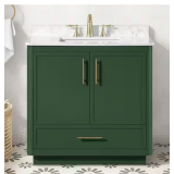 - Home Decorators Collection Tamsin 36 in. forest green freestanding bathroom vanity with single sink, white engineered marble countertop and backsplash included for a traditional vanity look