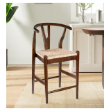 (267) 3 Pack Boraam Wishbone 24in. High Back Wood Kitchen Bar Stool with Rush Seat-Cappuccino Finish-1 Counter Stool
