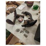 Located at our Auction Building 2431 Youngstown Hubbard road Youngstown Ohio 44505 US RT 62 & RT 7 run together as Yo. Hubbard road Updated List and Photos coming soon at anglinsauction.com Bedroom Living room And dining room furniture, Oak Oval or round dining room table with 6 heavy duty bentwood chairs, Oak corner china closet, oak dry sink, Oak sofa table, collectible glassware and china,costume jewelry, blue decorated crocks, field crocks, mill stones, #14 Griswold 718 skillet, Enterprise sausage stuffer, mantle clocks, nice lot of old framed prints Maxfield Parrish print, Rare leaded stained glass shade wooden mold, antique outdoor lighting, old door hardware and knobs, security badges, glass mail box, Drink Bireleys soda crate full of original bottles, pocket knives, Architectural antique windows, cow skull, water meter lamp, Large lot of Household goods collectibles, Hand and Garden tools and much more with second auctioneer at 1 PM Updated List and Photos coming soon at anglinsauction.com