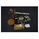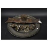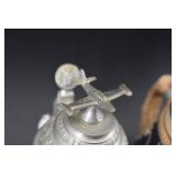 We have switched to the bidding platform Hibid, so all bidders will need to re-register for a new user name and password. Go To www.bhdauctions.com To Bid Catalog: 1 German Imperial Era, Fusilier Pattern Officers Sword, Etched Blade 2 American Standard Tool Co .22 Caliber Pocket Revolver 1868-1873 3 Remington New Model Pocket Revolver 4 Leather US Gun Holster 5 CSA Brass Belt Buckle 6 Ancient Greek Silver Tetradrachm Coin 7 Ancient Greek Silver Tetradrachm Coin 8 Ancient Greek Silver Tetradrachm Coin 9 Silver Shekel / Eagle Ancient Greek Coin 10 Kero Railroad Lantern, possibly an early "Fantasy" model. 11 Cast Iron Wall Mount Coffee Grinder 12 Stanley Bailey No.5 Wood Workers Plane 13 AH Reid Antique Spiral Push Drill / Screw Driver 14 LL Bean Hand Painted Wood Duck Decoy 15 Paper Label Finch's Rye Whiskey Bottle 16 Chinese Shiwan Ware Ceramic Oil Lamp with a green glaze 17 1873 Chamelot-Delvigne French Service Revolver 18 P Beretta 686 Onyx Made In Italy 20 Gauge Shotgun 19 Italian P.N.F. and M.V.S.N. Model 1937 Dress Dagger 20 Antique Wood Handle Knife w Sheath 21 5 Assorted Knives 22 US Compass, Aviation Goggles and Steam Punk Goggles 23 Remington Dupont Babe Ruth Framed Ad 24 Art Nouveau glass claret jug 25 American yellowware pottery recumbent lion figure 26 Hand Carved Horse Oxen And Wagon Germany 27 4 Beer Steins Including Lithopane NUDE 28 Zaanse Dutch wall clock, featuring a figure of Atlas holding a celestial globe 29 Hummel Goebel #1323 Fanfare Figurine 30 3 Assorted Hummel Goebel Figurines 31 Hummel Goebel Angel Christmas Ornaments 32 3 Assorted Hummel Goebel Figurines 33 Vintage Dukes of Hazzard Metal Lunch Box w Thermos 34 Vintage Gunsmoke Metal Lunch Box 35 ET and Close Encounters Metal Lunch Boxes 36 3 Assorted Metal Lunch Boxes 37 French Zig Zag Corkscrew 38 Stoneware meat tenderizer or kitchen mallet with a wooden handle 39 Lithographed wind-up toy battleship by the Wolverine Manufacturing Co. in the late 1930s or early 1940s 40 Israeli Defense Forces (IDF) military bag or pouch 41 Collectible Pittsburgh Milkglass Cup 42 Antique brass kerosene oil carriage lantern 43 Stellmacher Teplitz green girl vase & Hand Painted Blue Glass Vase 44 Hopi Pueblo pottery bowl 45 Antique brass or bronze censer 46 2 Mortars and 1 Pestle 47 Joseph Rodgers English Shear Steel Knife 48 Cast Iron Cauldron String Holder 49 Single Bell Alarm Clock 1886 50 Mini German Carriage Clock 51 Remington Model 700 30-06 Sprg Rifle w Scope B6344341 52 Winchester Model 70 SA 243 WIN Youth Ranger Rifle w/ Scope G301113 53 243 WIN Cartridges 54 30-06 Springfield Cartridges 55 Box of 7mm Remington Magnum Cartridges 56 14K Gold Chain w/ Locket - Approx. Weight 10.15 Grams 57 Cameo Pin and Necklace 58 Assorted Costume Jewelry 59 Bohemian Garnet Cluster Necklace and Earrings 60 Seven Springs PA 1 OZ .999 Silver Coin 61 Beaver Fur Top Hat 62 Dutch Scene Oil Painting On Canvas Artist Signed 63 Costa Rica Feather Art and Bag 64 Bohemian enameled glass vase 65 Goebel Hummel "Chapel Time" clock figurine 66 4 Assorted Hummel Goebel Figurines 67 3 Assorted Hummel Goebel Figurines 68 4 Assorted Hummel Goebel Figurines 69 Universal Movie Monsters Metal Lunch Box w Thermos 70 Little House On The Prairie Metal Lunch Box w Thermos 71 Thundercats and Dragons Lair Metal Lunch Boxes 72 3 Plastic Lunch Boxes 73 Graflex Vintage Camera In Case 74 Kodak Reflex II Vintage Camera 75 Mycro Mini Camera and Other 76 Birch Portable Suitcase Victrola 77 Vintage Royal Typewriter In Case 78 PRR Dressel NOS Railroad Lantern 79 Cast Iron Cauldron String Holder 80 Antique Pantry Box In Paint 81 Folk Art Paint Decorated Wood Horse Statue 82 Finger Jointed Brass Melting Pot / Ladle 83 Antique Stanhope carved bone letter opener and dip pen combination 84 C.R. Auman North Carolina art pottery alkaline-glazed pitcher. 85 Dowler's Nocturnal Vesta Match Box Safe made of brass with gilded decoration. 86 Carved Wood Roller 87 Remington 11-87 Premier Shotgun w/ Chokes PC497245 88 Thompson Center Arms 50 Cal Hawken Percussion Rifle 89 LOT 90 Assorted Shotgun Shells and Ammo Box 91 Bob Allen Gun / Shell Bags and Ammo 92 German Stoneware Punch Bowl Set 93 Assorted Beer Taps 94 Rembrandt Print w/ Dutch Newspaper Clipping On Back 95 Bibi Laffun Head Tyrolean Yodeler 96 Hand Painted Christmas Egg Ornaments 97 Assorted Costume Jewelry and Box 98 Chinese ivory puzzle ball w/ handle 99 Silver salt cellar with a cobalt blue glass insert 100 2 Vintage Leather Purses 101 M.I. Hummel figurine by Goebel Ring Around the Rosie 102 4 Assorted Hummel Goebel Figurines 103 3 Assorted Hummel Goebel Figurines 104 3 Assorted Hummel Goebel Figurines 105 Roy Rogers and Dale Evans Double Bar Ranch Metal Lunch Box 106 Bonanza Metal Lunch Box 107 Peanuts and Disney Metal Lunch Boxes 108 Disney, Snow White and Holly Hobbie Metal Lunch Boxes 109 US One Dollar 1 Oz. Fine Silver Coin 110 US One Dollar 1 Oz. Fine Silver Coin 111 US One Dollar 1 Oz. Fine Silver Coin 112 Louis Armstrong Picture w/ Autograph 113 Smith & Wesson Revolver - AS IS 114 Antique Percussion Pistol - NO Handle 115 3 Military Medals 116 U.S. Army M1910 mess kit, likely from the World War I era. 117 Gettysburg Paper Weight 118 Lufkin 761 Rule and Camillus Pocket Knife 119 Tillotson Bone Handle Carving Set 120 Pair Chase Copper Vases USA 121 Concave Engraved Curtain Tie Backs 122 Waltham Art Deco skyscraper 8-day mechanical mantel clock in a chrome-plated case - As Found tilts back forth too easily 123 Assorted Costume Jewelry & Watches 124 Assorted Costume Jewelry 125 4 Designer Handbags 126 Accordion Design Sewing Cabinet 127 Carved Wood Bull and Bookends 128 2 Wood Duck Decoys 129 2 Wood Duck Decoys 130 Chinese glazed ceramic elephant stool 131 P. Buckley Moss "Church Wardens" Artist Signed and Numbered Print 132 Wallace Nutting A Barre Brook Print 133 Assorted Antique Glass Christmas Ornaments 134 Assorted Antique Glass Christmas Ornaments 135 Assorted Antique Glass Christmas Ornaments 136 Assorted Antique Glas