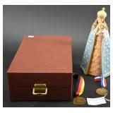 We have switched to the bidding platform Hibid, so all bidders will need to re-register for a new user name and password. Go To www.bhdauctions.com To Bid Catalog: 1 German Imperial Era, Fusilier Pattern Officers Sword, Etched Blade 2 American Standard Tool Co .22 Caliber Pocket Revolver 1868-1873 3 Remington New Model Pocket Revolver 4 Leather US Gun Holster 5 CSA Brass Belt Buckle 6 Ancient Greek Silver Tetradrachm Coin 7 Ancient Greek Silver Tetradrachm Coin 8 Ancient Greek Silver Tetradrachm Coin 9 Silver Shekel / Eagle Ancient Greek Coin 10 Kero Railroad Lantern, possibly an early "Fantasy" model. 11 Cast Iron Wall Mount Coffee Grinder 12 Stanley Bailey No.5 Wood Workers Plane 13 AH Reid Antique Spiral Push Drill / Screw Driver 14 LL Bean Hand Painted Wood Duck Decoy 15 Paper Label Finch's Rye Whiskey Bottle 16 Chinese Shiwan Ware Ceramic Oil Lamp with a green glaze 17 1873 Chamelot-Delvigne French Service Revolver 18 P Beretta 686 Onyx Made In Italy 20 Gauge Shotgun 19 Italian P.N.F. and M.V.S.N. Model 1937 Dress Dagger 20 Antique Wood Handle Knife w Sheath 21 5 Assorted Knives 22 US Compass, Aviation Goggles and Steam Punk Goggles 23 Remington Dupont Babe Ruth Framed Ad 24 Art Nouveau glass claret jug 25 American yellowware pottery recumbent lion figure 26 Hand Carved Horse Oxen And Wagon Germany 27 4 Beer Steins Including Lithopane NUDE 28 Zaanse Dutch wall clock, featuring a figure of Atlas holding a celestial globe 29 Hummel Goebel #1323 Fanfare Figurine 30 3 Assorted Hummel Goebel Figurines 31 Hummel Goebel Angel Christmas Ornaments 32 3 Assorted Hummel Goebel Figurines 33 Vintage Dukes of Hazzard Metal Lunch Box w Thermos 34 Vintage Gunsmoke Metal Lunch Box 35 ET and Close Encounters Metal Lunch Boxes 36 3 Assorted Metal Lunch Boxes 37 French Zig Zag Corkscrew 38 Stoneware meat tenderizer or kitchen mallet with a wooden handle 39 Lithographed wind-up toy battleship by the Wolverine Manufacturing Co. in the late 1930s or early 1940s 40 Israeli Defense Forces (IDF) military bag or pouch 41 Collectible Pittsburgh Milkglass Cup 42 Antique brass kerosene oil carriage lantern 43 Stellmacher Teplitz green girl vase & Hand Painted Blue Glass Vase 44 Hopi Pueblo pottery bowl 45 Antique brass or bronze censer 46 2 Mortars and 1 Pestle 47 Joseph Rodgers English Shear Steel Knife 48 Cast Iron Cauldron String Holder 49 Single Bell Alarm Clock 1886 50 Mini German Carriage Clock 51 Remington Model 700 30-06 Sprg Rifle w Scope B6344341 52 Winchester Model 70 SA 243 WIN Youth Ranger Rifle w/ Scope G301113 53 243 WIN Cartridges 54 30-06 Springfield Cartridges 55 Box of 7mm Remington Magnum Cartridges 56 14K Gold Chain w/ Locket - Approx. Weight 10.15 Grams 57 Cameo Pin and Necklace 58 Assorted Costume Jewelry 59 Bohemian Garnet Cluster Necklace and Earrings 60 Seven Springs PA 1 OZ .999 Silver Coin 61 Beaver Fur Top Hat 62 Dutch Scene Oil Painting On Canvas Artist Signed 63 Costa Rica Feather Art and Bag 64 Bohemian enameled glass vase 65 Goebel Hummel "Chapel Time" clock figurine 66 4 Assorted Hummel Goebel Figurines 67 3 Assorted Hummel Goebel Figurines 68 4 Assorted Hummel Goebel Figurines 69 Universal Movie Monsters Metal Lunch Box w Thermos 70 Little House On The Prairie Metal Lunch Box w Thermos 71 Thundercats and Dragons Lair Metal Lunch Boxes 72 3 Plastic Lunch Boxes 73 Graflex Vintage Camera In Case 74 Kodak Reflex II Vintage Camera 75 Mycro Mini Camera and Other 76 Birch Portable Suitcase Victrola 77 Vintage Royal Typewriter In Case 78 PRR Dressel NOS Railroad Lantern 79 Cast Iron Cauldron String Holder 80 Antique Pantry Box In Paint 81 Folk Art Paint Decorated Wood Horse Statue 82 Finger Jointed Brass Melting Pot / Ladle 83 Antique Stanhope carved bone letter opener and dip pen combination 84 C.R. Auman North Carolina art pottery alkaline-glazed pitcher. 85 Dowler's Nocturnal Vesta Match Box Safe made of brass with gilded decoration. 86 Carved Wood Roller 87 Remington 11-87 Premier Shotgun w/ Chokes PC497245 88 Thompson Center Arms 50 Cal Hawken Percussion Rifle 89 LOT 90 Assorted Shotgun Shells and Ammo Box 91 Bob Allen Gun / Shell Bags and Ammo 92 German Stoneware Punch Bowl Set 93 Assorted Beer Taps 94 Rembrandt Print w/ Dutch Newspaper Clipping On Back 95 Bibi Laffun Head Tyrolean Yodeler 96 Hand Painted Christmas Egg Ornaments 97 Assorted Costume Jewelry and Box 98 Chinese ivory puzzle ball w/ handle 99 Silver salt cellar with a cobalt blue glass insert 100 2 Vintage Leather Purses 101 M.I. Hummel figurine by Goebel Ring Around the Rosie 102 4 Assorted Hummel Goebel Figurines 103 3 Assorted Hummel Goebel Figurines 104 3 Assorted Hummel Goebel Figurines 105 Roy Rogers and Dale Evans Double Bar Ranch Metal Lunch Box 106 Bonanza Metal Lunch Box 107 Peanuts and Disney Metal Lunch Boxes 108 Disney, Snow White and Holly Hobbie Metal Lunch Boxes 109 US One Dollar 1 Oz. Fine Silver Coin 110 US One Dollar 1 Oz. Fine Silver Coin 111 US One Dollar 1 Oz. Fine Silver Coin 112 Louis Armstrong Picture w/ Autograph 113 Smith & Wesson Revolver - AS IS 114 Antique Percussion Pistol - NO Handle 115 3 Military Medals 116 U.S. Army M1910 mess kit, likely from the World War I era. 117 Gettysburg Paper Weight 118 Lufkin 761 Rule and Camillus Pocket Knife 119 Tillotson Bone Handle Carving Set 120 Pair Chase Copper Vases USA 121 Concave Engraved Curtain Tie Backs 122 Waltham Art Deco skyscraper 8-day mechanical mantel clock in a chrome-plated case - As Found tilts back forth too easily 123 Assorted Costume Jewelry & Watches 124 Assorted Costume Jewelry 125 4 Designer Handbags 126 Accordion Design Sewing Cabinet 127 Carved Wood Bull and Bookends 128 2 Wood Duck Decoys 129 2 Wood Duck Decoys 130 Chinese glazed ceramic elephant stool 131 P. Buckley Moss "Church Wardens" Artist Signed and Numbered Print 132 Wallace Nutting A Barre Brook Print 133 Assorted Antique Glass Christmas Ornaments 134 Assorted Antique Glass Christmas Ornaments 135 Assorted Antique Glass Christmas Ornaments 136 Assorted Antique Glas
