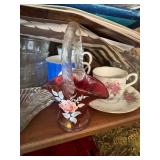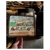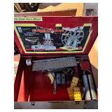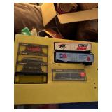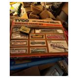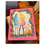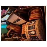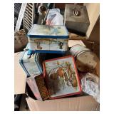 Railroad lanterns & books, oil dispenser can, lanterns, Soapiter dispenser, viewfinder & cards, lunch boxes, character glasses, tools, costume jewelry, Harrisonburg crate & bank, iron banks, metal egg carrier, cherry seeder, buggy throw, metal decorator plaques, wooden crates, albums, Outer Space map, floor drill press, tube box, wood nail keg, shoe lasp, radio jet, military helmet, runner sled, corn shellers, oyster tin, shelves, figurines, punch bowl set, music boxes, train clocks, wood tv trays, juice set, vases, goblets, glass tray, Longaberger baskets, Thirty-One bags, Club cookware, Cookie cutters, glass basket, catalogs, iron skillet, sewing basket, Pyrex, Corning, Corelle, green depression, cameras, Christmas, tins, Lane dresser & chest of drawers, china cabinet, comics, erector set, Chinese checkers, Snoopy, Star Wars (toys, glasses, clock, figures), Star Trek books, Silver Mountain train, globes, Barbies (60s, 80s, 90s), Madame Alexander Dolls (incl. Little Women set), dolls (Fred Astaire, Ginger Rogers, Judy Garland), Smokey & Woodsy, Breyer horses, games, train sets, Mickey gumball machine & stuffed animal, GI Joe military police set, Tin Man doll, Tin Man & Cowardly Lion hand puppets, Cinderalla Prince doll, electronics experiment set.
