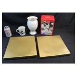 CATALOG TEXT BELOW: 2 - Incredible Entertainment Wall LIKE NEW 3 - Storage Armoire to Die For 4 - Oak Coffee Table 5 - Child's Rocking Chair Adorable 6 - 2 Wooden Benches 7 - Mid Century Mesh Outdoor Tea Cart 8 - Rolling Shoe Rack 9 - End Table 10 - Walker with Seat and Storage 11 - Wooden Side Table or Plant Stand 12 - Oak Side Table 13 - Wood Bar Stool 14 - Modern Black Coffee Table 15 - Modern Black End Table 16 - Marble Top Table with Wooden Base 17 - Shelving Unit 18 - Console Table 19 - Rocking Chair 20 - Teak Side Table 21 - Bookcase Bookshelf (2 pieces) 22 - 3 Drawer Storage Unit 23 - Wooden Bookshelf 24 - 2 Outdoor Chairs 25 - Wood Bar Stool 26 - Wood Desk 27 - Dorm Size Refrigerator 28 - Almond Blossom Sofa & Love Seat 29 - 3 Month Old Brown Sofa Couch This is faux leather which is ten times stronger than real leather. 30 - Aluminum Garage Shelving Unit 31 - Black Arm Chair 32 - Luxurious Sofa Couch with nailhead Trim 33 - 2004 Cadillac CTS No Title As Is Car does not run. No intake manifold. No title. Winner will get our bill of sale to take to dmv for their own title. Selling as found. As Is. No warranties expressed or implied. Winner will have 7 days to remove vehicle with payment due at end of auction. 34 - Dodge Power Ram Pick Up 4 x 4--No Title As Is Truck does not run. Sold as is with no warranties expressed or implied. Payment is due at end of auction. Winner will have 7 days to remove vehicle. NO TITLE. In the pictures you'll see a hood ornament which is not included. It has since been "stolen". 35 - 2005 Aluminum Snowmobile Trailer NO TITLE Great trailer. NO TITLE. Winner will receive our bill of sale to take to dmv and apply for title. Sold As Is. There is nothing wrong with the trailer. You can tow it home. 150 - 1Hand Cut Crystal Glass Vase 1030 - Silver Wrapped Root Handled Umbrella 1031 - Tiger Tales Told by Mizzoui Alumni Book 1032 - 2 Stamp Albums with Contents 1033 - Assorted ESPN Sports Magazines and MORE 1034 - Assorted Little Blue Books 1035 - Vintage Booklets and Pamphlets 1036 - Assorted Little Blue Books 1037 - Assorted Little Blue Books 1038 - Lot of Vintage Booklets and Pamphlets 1039 - Assorted Little Blue Books 1040 - Assorted Little Blue Books 1041 - Assorted Little Blue Books 1042 - Assorted Little Blue Books 1043 - Assorted Little Blue Books 1044 - Assorted Little Blue Books 1045 - Assorted Little Blue Books 1046 - Assorted Little Blue Books 1047 - Assorted Little Blue Books 1048 - Assorted Little Blue Books 1049 - Assorted Little Blue Books 1050 - Blue Wicker Basket with lid and contents 1051 - Antique Gilbert Mantle Clock 1052 - Christmas Snow Globe and MORE 1053 - Rabbit Planter and Sugar Bowl 1054 - 1950s Hazel Atlas Christmas Egg Nog Punch Bowl Set 1055 - Set of Lenox Abigail Fine China Coffee Cups Set of Lenox Abigail Fine China Coffee Cups 1056 - Glass Pumpkin Goodie Jar 1057 - 2 Holiday Bowls 1058 - Melody In Motion Porcelain Clown Seiji Nakane Melody In Motion Porcelain Clown Seiji Nahame 1059 - JB Hirsch Nautical Mariner Lamp Both the base and globe are marble. What a rare find! 1060 - Chinese Family Rose Ceramic Giner Jar & Box 1061 - Assorted Baking Dishes Pyrex & Fire King 1062 - 6 Collectibles Plates Norman Rockwell 1063 - Vtg Empoli Peacock Teal Glass Compote 1064 - Serving Bowls and Platters 1065 - Lenox Holiday Christmas Candle Lamp & Shade 1066 - 3 Piece Set Royal Doulton Bunnykins 1067 - Franciscan Ware Larkspur Pattern Serving Pieces 1068 - Lead Crystal Bowls 1069 - Smiley Pig Pitcher Shawnee Mid Century Kitchen 1070 - 3 Pieces of Lenox Fine China Items 1071 - Hull Pottery Egret Tropical Flower & Crane Vase 1072 - 4 Fire King Peach Lusterware Beehive Bowls 1073 - McKee Glass Quintex Prescut Creamer & Sugar 1074 - Stoneware Pitcher 1075 - Lot of Assorted Plates-All for one money! 1076 - Fitz & Floyd Fawna & Flaura Tea Pot and Bowl 1077 - Unique Serving Items-Monkeywood Trees & MORE 1078 - 3 Beautiful Planters 1079 - Vintage Homco Nativity & Animal Set The tree is not part of the set. There is a piece damaged see pics. 1080 - Holiday Kitchen & Bath Linens 1081 - Cheese Server and Glass Canister with Wood Lid 1082 - Serving Bowls -All for one money! 1083 - 3 Lenox China Christmas Plates 1084 - 2 Turkey Platters 1085 - Club Stock Pot with Lid 1086 - Oriental Matching Vases, Egg and Jester Doll 1087 - 2 Sets of Coca Cola Playing Cards 1088 - Santa & Snowman Wooden Nesting Dolls & MORE 1089 - Fitz & Floyd "We Wish you a Merry.." Music Box 1090 - Singer Sewing Buttonholer & Special Discs 1091 - Assorted Christmas Ornaments and MORE 1092 - Assorted Pots & Pans 1093 - Lot of Linens 1094 - 2 Gallon Stoneware Blue Band Crock Butter Churn 1095 - Mr. & Mrs. Santa Claus 1096 - Vintage Gold Imari Blue Hand Painted Vase 1097 - Adorable Nativity Set 1098 - 3 Packs of Polaroid Spectra Platinum Camera Film 1099 - Beautiful Serving Platters 1100 - McKee 1896-1904 "Aztec" Punch Bowl w/ Clear & Gree 1101 - Mikasa Fine Porcelain Madonna & Child 1102 - 2 Vintage Planters--Cat & Dog plus a Duck 1103 - Holiday Decor 1104 - 3 Piece lot-LeCruset Cast iron Enameled Bakeware 1105 - Hen Planter and Decor 1106 - Vintage Hull Pottery Yellow Cornucopia Vase 1107 - Silver Rimmed Wexford Pitcher 1108 - Pewter Porringer, Silver Plated Items 1109 - Tea Pot (no lid-lovely potential planter) 1110 - Smokey Quartz Crystal Cluster 1111 - Organizing Racks 1112 - Mid Century Kromex Spin Aluminum Ice Bucket 1113 - Candle Lantern 1114 - Vintage All Wood Rooster Canister Set 1115 - Larger-than-Life Rabbit Planter 1116 - Charlie Brown Christmas Tree 1117 - 2 Vintage Metal Cracker Tins Canisters 1118 - Vintage Wooden Canister Set with Duck Family 1119 - 2 Hummingbird Feeders & Lantern 1120 - Lot of Misc-All for one money! 1121 - "Cock of the Walk" Rooster 1122 - Double Blue Band Stoneware Crock Pitcher 1123 - Crystal Vase 1124 - 2 Crystal Bowls 1125 - 2 Crystal Vases 1126 - Cake Plate, Platters 1127 - Vintage Universal Cambridge China Set 1128 - Crystal Cut Crystal Bowl Vase 1