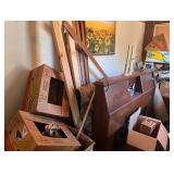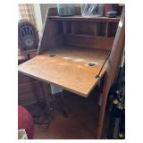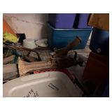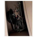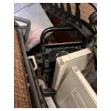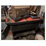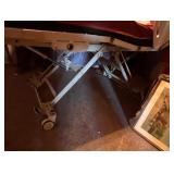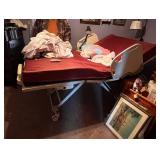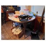 Household & Misc. Full size “Sizewise” hospital bed (electric raises, lowers & adjust), Sanyo 46” TV, DVD/VCR player, Overstuffed love seat, round oak clawfoot dining room table w/6 press back chairs & leaf, childs oak secretary, Kenmore electric dryer, Glider rocker, bent glass oak curio, occ tables, Pronto sure-step mobility scooter, Formica table & chairs, Chest of drawers, lot depression glass, Antique double wood & iron school desk, rocking chair, lot dolls, Faith Wick dolls, lot fishing poles, silver plate flatware, lot vintage tins, bottles & misc., wash boards & rug beaters, lot enamel ware, misc. small kitchen appliances, electric cords, pictures mirrors & wall art, boom box, misc. jars, 10” Delta table saw, 5” bench vise, benchtop drill press, Craftsman 10” bandsaw, Lincoln 100 weld-pak wire welder, Craftsman 20gal portable air compressor, Workmate table,