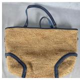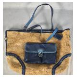 Authentic Coach Woven Straw Navy Blue Tote Shoulder Bag L1269-22903 |