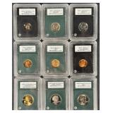 (9) INB Certified Graded Coins Dime, Nickels, Lincoln Cents, Sacagawea, Susan B Anthony |