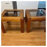 Lot #55 - Pair of Vintage Oak Glass Top End Tables