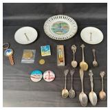 Lot #229 - Vintage Seattle Space Needle & 1962 Worlds Fair Souvenirs Sterling Spoons, Pins & Ephemera