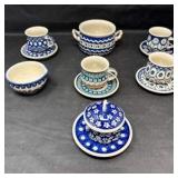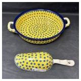 Lot #23 - Handmade Polish Pottery Teapot Manufaktura Boleslawiec Yellow & Blue Lidded