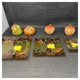 Lot #250 - Seasonal Autumn Serving Plates and Decorative Pumpkins Set
