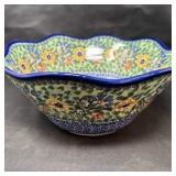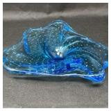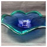 Lot #234 - Hand-Blown Art Glass Bowl Blue & Teal Freeform Sculptural Dish