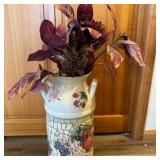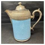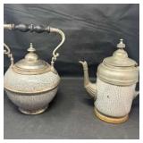 Lot #162 - Vintage Decorative Pewter-Trimmed Tea Pot Speckled Enamel / Metal Kettle