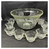 Lot #259 - Vintage 1930s Jeannette Glass Company Georgian Depression Glass Punch Bowl Set