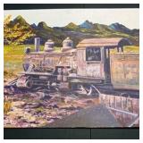 Lot #42 - Vintage 1976 Train Locomotive Oil Painting by Jasper
