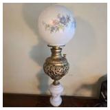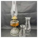 Lot #256 - Vintage 1930s Clear Glass Oil Lamp with Two Replacement Chimneys