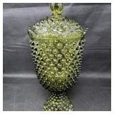Lot #181 - Vintage Green Hobnail Glass Covered Pedestal Candy Jar Mid-Century