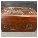 Lot #205 - Vintage Wooden Jewelry or Keepsake Box with Blue Velvet Lining