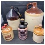 Lot #258 - Vintage Stoneware Whiskey Jugs Lot including Platte Valley and Mississippi Mud
