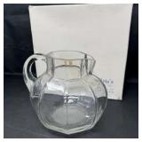 Lot #182 - Vintage Clear Glass Water Pitcher w/ Original Box Faceted Rim Chipped