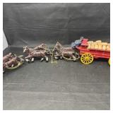 Lot #257 - Vintage Cast Iron Horse-Drawn Wagon Toy w/ Barrels Needs Repair As Found