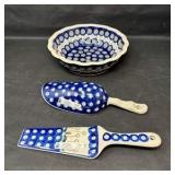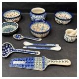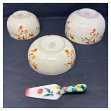 Lot #82 - Vintage Halls Superior Quality Kitchenware Mixing Bowls & Floral Spatula Lot
