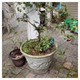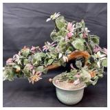 Lot #201 - Vintage Chinese Jade and Hardstone Floral Bonsai Tree Sculpture in Celadon Pot