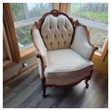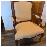 Lot #193 - Ethan Allen Upholstered Armchair Solid Wood Frame, Classic Traditional Style