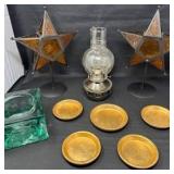 Lot #28 - Vintage Glass, Metal Star Lanterns, Coasters, and Oil Lamp Lot