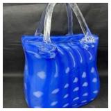 Lot #184 - Hand-Blown Cobalt Blue Art Glass Basket w/ White Spatter & Clear Handle