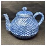 Lot #164 - Bordallo Pinheiro Portuguese Ceramic Blue Basket-Weave Teapot Made in Portugal