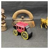 Lot #251 - Vintage Cast Iron & Metal Collectibles Lot Coin Banks, Wells Fargo Stagecoach & Antique Iron